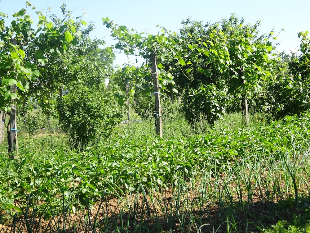 Un suivi détaillé de 5 fermes à montré que la production de légumes varie de 1T à 20 tonnes par an avec des rendements moyens de 5 à 28 tonnes par ha (en moyenne 1,5 à 3 kg de légumes par m2) auxquels s'ajoute la production fruitière. Les rendements en fruits sont plus faibles car la plupart des arbres n'ont pas encore atteint leur vitesse de croisière. La production fruitière démarre juste. D'où des rendements en fruits qui s'étalent entre 0,2T à 4T par ha.