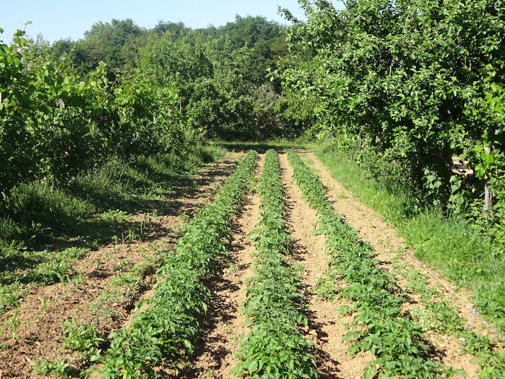 Ces projets agroforestiers ont vu le jour sur de petites surfaces entre 0,5 et 2 ha. Les rangées d'arbres ne doivent pas être trop rapprochées : 10 mètres minimum voir 12 mètres. Même si la mécanisation est limitée et parfois non motorisée, il faut pouvoir passer avec les engins pour entretenir facilement les rangées d'arbres et désherber les planches (par exemple pouvoir faire demi-tour avec son cheval). Les rangées d'arbres sont aussi utilisées pour faire passer l'irrigation.