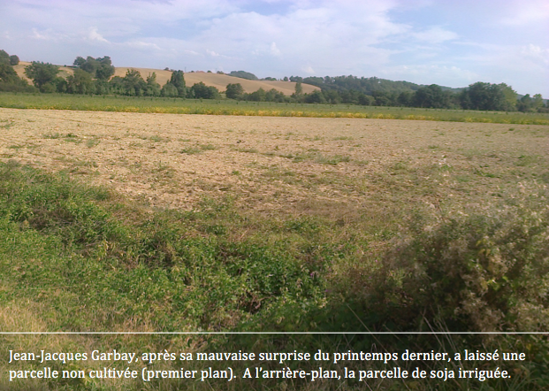 Gérad LIBAROS, un autre agriculteur, cultive du soja après un couvert végétal de féverole. Il pratique deux irrigations de 45 mm sur toutes les parcelles de soja. Pour restituer les couverts, il utilise un broyeur puis deux passages de déchaumeur en sol argileux et sur l'autre parcelle possédant le même type de sol, il utilise un déchaumeur à disque puis réalise un labour de 15 cm. Sur une parcelle de sol argilo-limoneux, il fait deux passages de déchaumeur. L'année dernière, il a obtenu un rendement moyen de 30 q/ha.