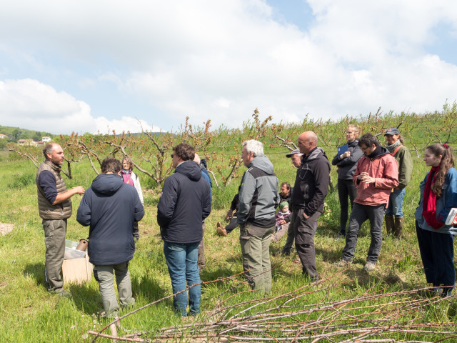 La rencontre « Biodiversité dans les fermes » organisée par SOLAGRO et AGRIBIO Rhône et Loire le 2 mai 2023 a permis de réunir une quinzaine d'agriculteurs. Cette rencontre s'est déroulée dans le cadre d'un projet 'Bandes fleuries' soutenu par la fondation ECOTONE et du groupe "30000 techniques alternatives en fruits à pépins". Lors de cette matinée, deux groupes ont été constitués pour aborder différents sujets clés de la biodiversité dans les fermes :