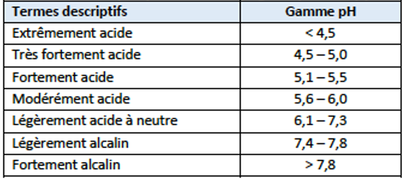 Le potentiel Hydrogène (pH) caractérise l’activité des protons. Il influence considérablement de nombreuses réactions et processus chimiques du sol. Il intervient, entre autres, dans la formation des sols, les grands cycles biogéochimiques, la solubilisation des éléments nutritifs et les processus essentiels au fonctionnement énergétique des cellules. La gamme de pH des sols situés entre 6 et 7 est optimale du point de vue de la mobilité des nutriments et donc à la croissance des plantes. Cela est relativement connu des agriculteurs qui maintiennent le pH des sols cultivés à des niveaux proche de la neutralité.
