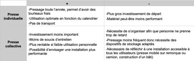 • achat d’une presse individuelle (location possible)