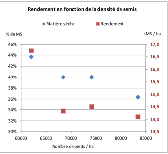 Une densité plus faible permettrait d’obtenir un rendement plus élevé. Néanmoins, pour les densités plus faibles, le taux de matière sèche est plus élevé.