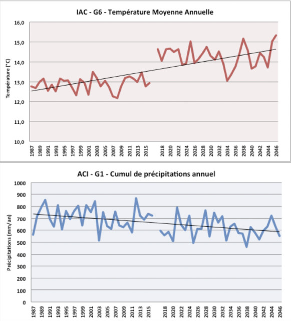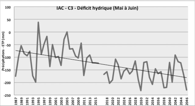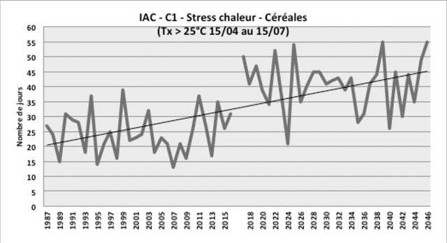 L’inertie climatique à l’échelle du globe implique une continuité des évolutions climatiques déjà observées localement dans les prochaines décennies. Les Indicateurs Agro-Climatiques suivant sont construits à partir des projections climatiques locales et illustrent les principaux enjeux climatiques pour un système grandes cultures.