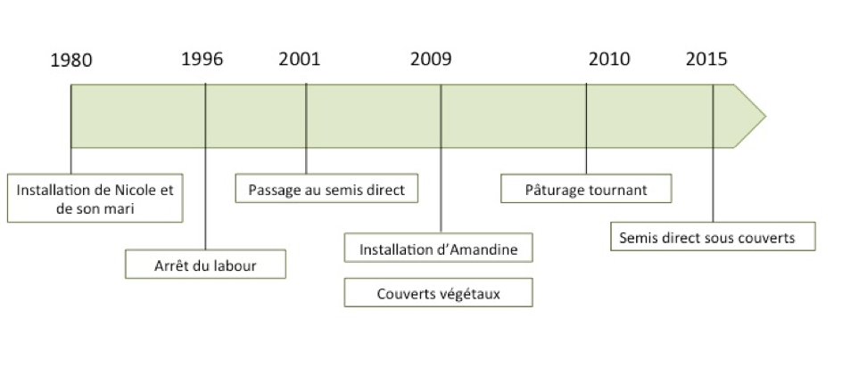La volonté de se convertir au bio reste d'actualité. Or les exploitantes ne souhaitent pas que la conversion se fasse au detriment des acquis du semis direct sous couverture. L'abandon des phyosanitaire reste un projet. Cependant, Amandine et Nicole essayent de diminuer au maximum les doses. Cette annee par exemple, elles ont diminué par deux leur dose de glyphosate. (100 L/ha à 50 L/ha)
