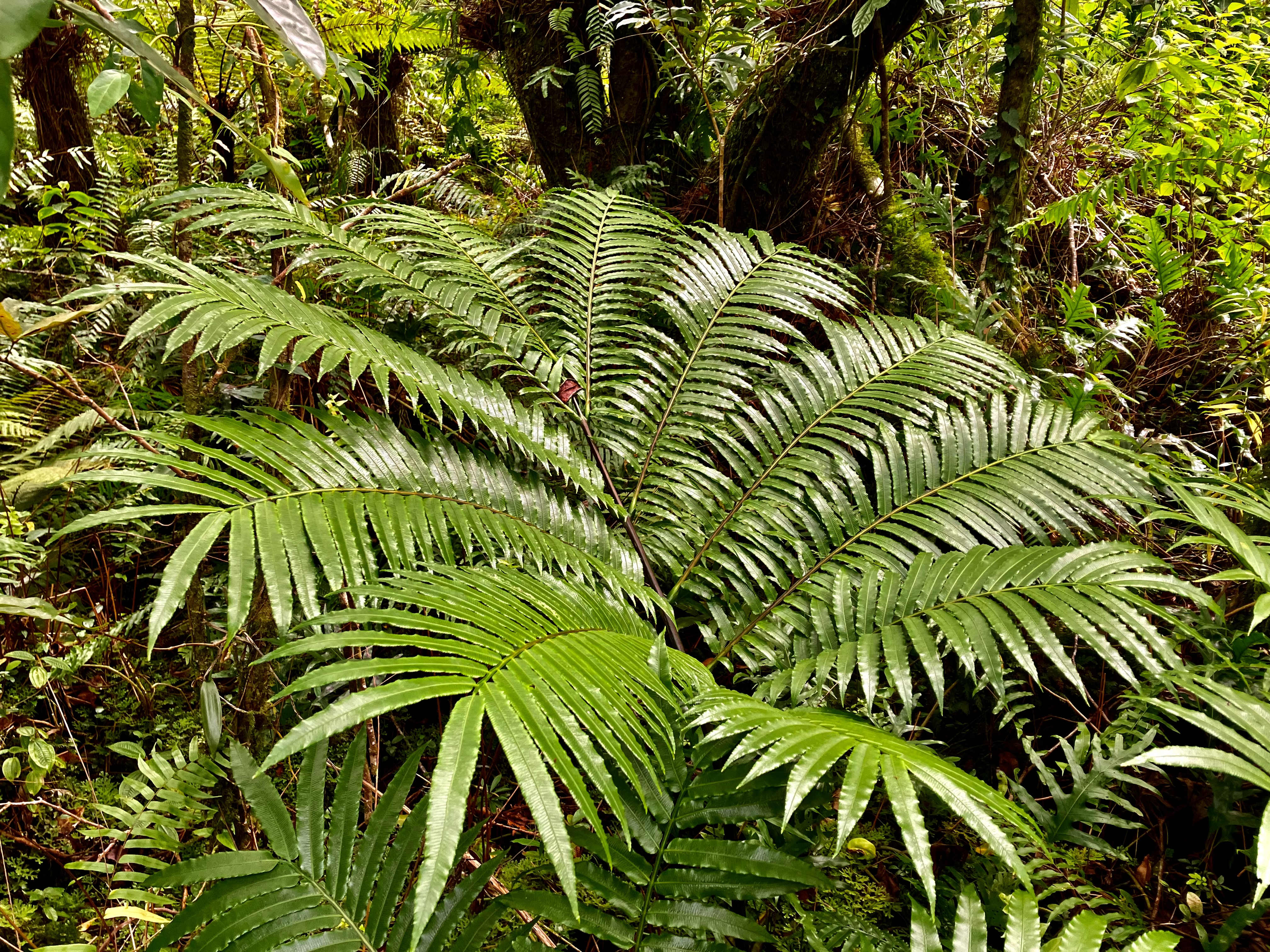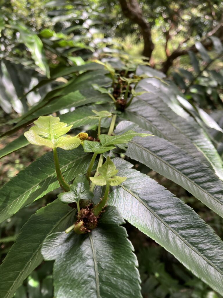 Afin de faciliter le désherbage des EEE, les Donnay expérimentent la plantation de fougères indigènes, présentes sur la concession. Le Parc national appuie cette démarche notamment par un inventaire réalisé sur la concession en 2024 (10 espèces ont été répertoriées mais il en existe bien d’autres).