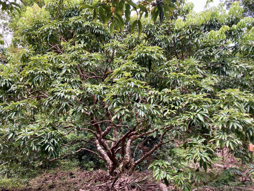 Tout de suite après la récolte, le chantier d’élagage en taille douce est lancé pour tailler l’ensemble des arbres et commencer à marcotter certaines branches. Chaque arbre de letchi est diagnostiqué et suivi annuellement.