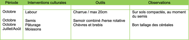 En 2018, 60 chèvres et 40 brebis sont passées sur sainfoin et luzerne et dans les céréales, sur paille après la moisson.