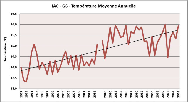L’inertie climatique à l’échelle du globe implique une continuité des évolutions climatiques déjà observées localement dans les prochaines décennies. Les Indicateurs Agro-Climatiques suivant sont construits à partir des projections climatiques locales et illustrent les principaux enjeux climatiques pour un système oléiculture.