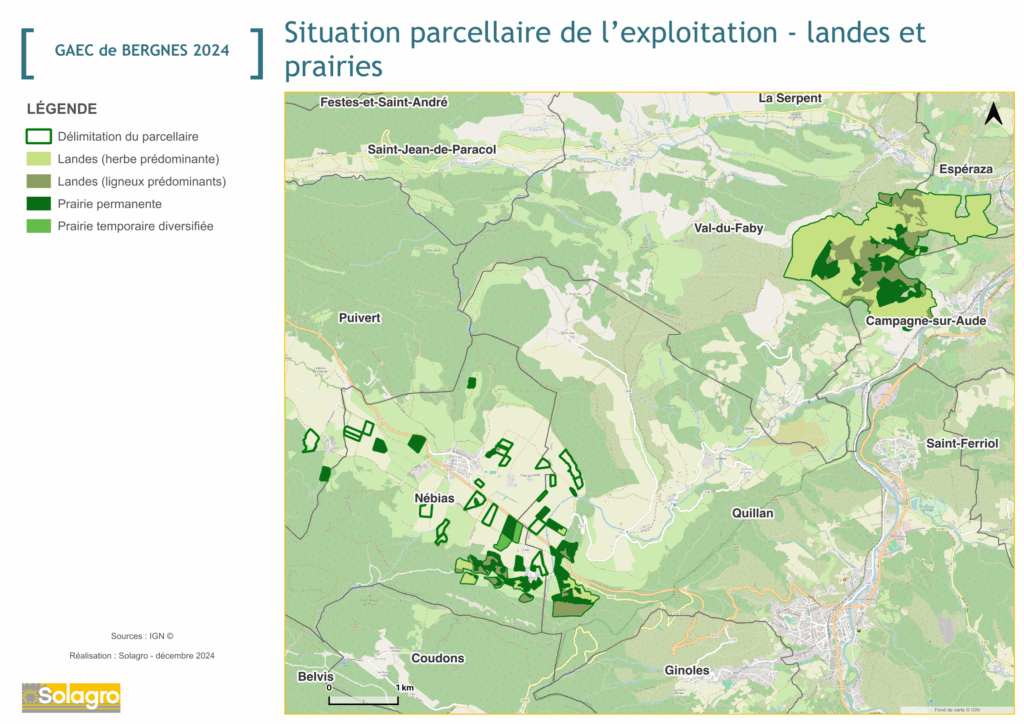- Des landes et praires permanentes autour du siège d’exploitation à Campagne sur Aude (300 m d’altitude)