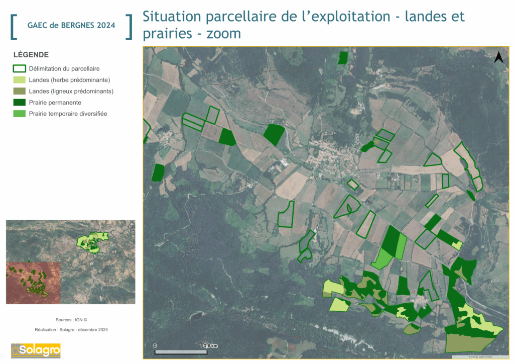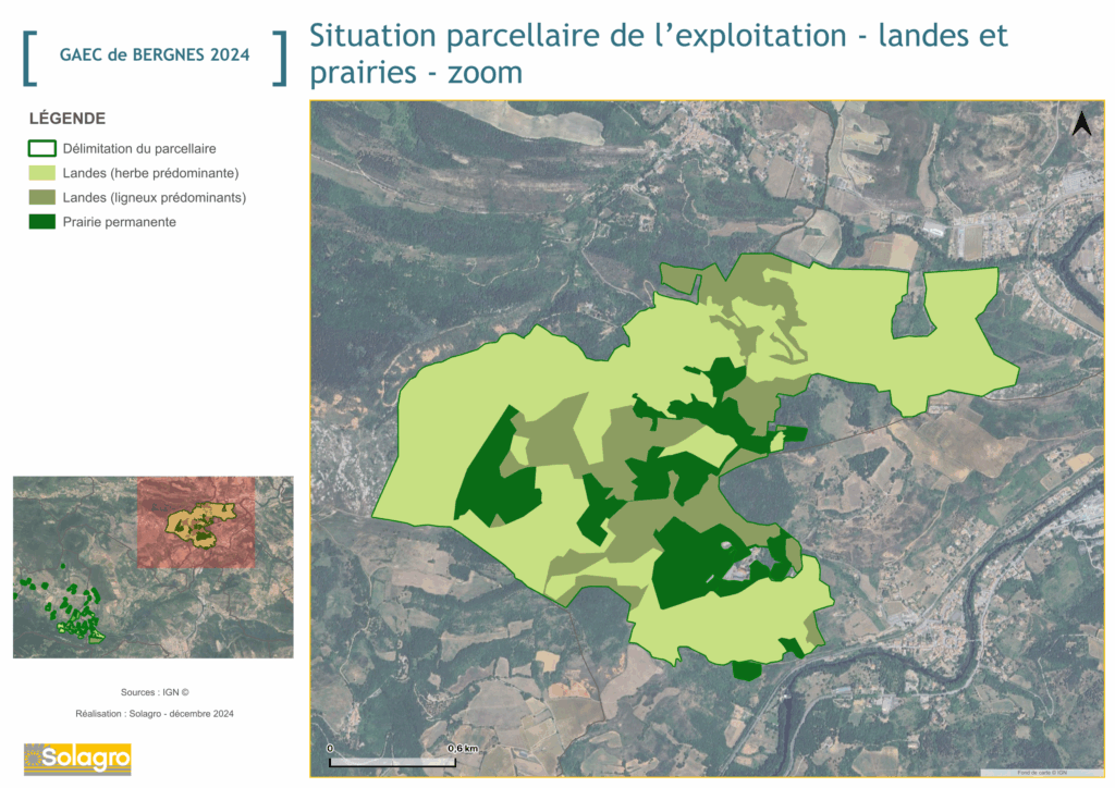 - En automne : l’ensemble du troupeau redescend à proximité du siège d’exploitation et pâture des landes (Carte ci-dessous)