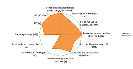 Tous les indicateurs agroenvironnementaux sont très satisfaisants hormis l’item « autonomie en concentrés ». Sylvain et Daphné on fait le choix de cultiver des céréales anciennes pour l’alimentation humaine avec une valeur ajoutée intéressante, ce qui permet d’avoir un revenu complémentaire de la production de viande. Les concentrés bio pour ruminants sont achetés.