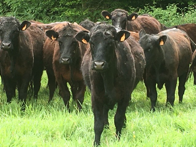 La race Angus permet de bien valoriser l’herbe. L’objectif était de se démarquer. Cette race écossaise est rustique. C’est une vache de taille moyenne d’un poids de 650 à 700 kg. Elle a une stature massive due à des pattes plutôt courtes et naturellement sans cornes. C’est une race bouchère qui produit une viande appréciée, finement persillée, avec une bonne conformation de carcasse et un excellent rendement en viande.