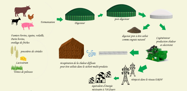 Ainsi ces exploitations ont répondu à l’autonomie alimentaire des élevages en implantant un séchoir en grange collectif multiproduits par la valorisation de la chaleur thermique du méthaniseur ; et celle en fertilisants par la production de digestats.
