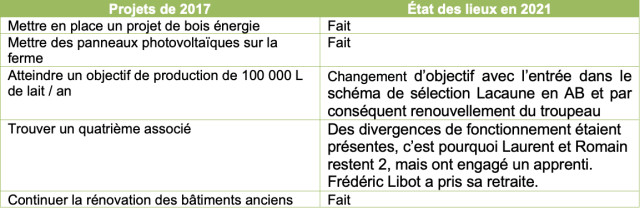 L'évolution de l'exploitation s'est faite en cohérence avec les valeurs initiales des exploitants. En effet, on observe que les indicateurs agroenvironnementaux sont similaires entre 2014 et 2017 malgré l'augmentation de la SAU et le doublement du cheptel.