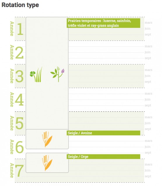 Dans un objectif d'autonomie alimentaire, l'ensemble des prairies temporaires est semé en mélanges.