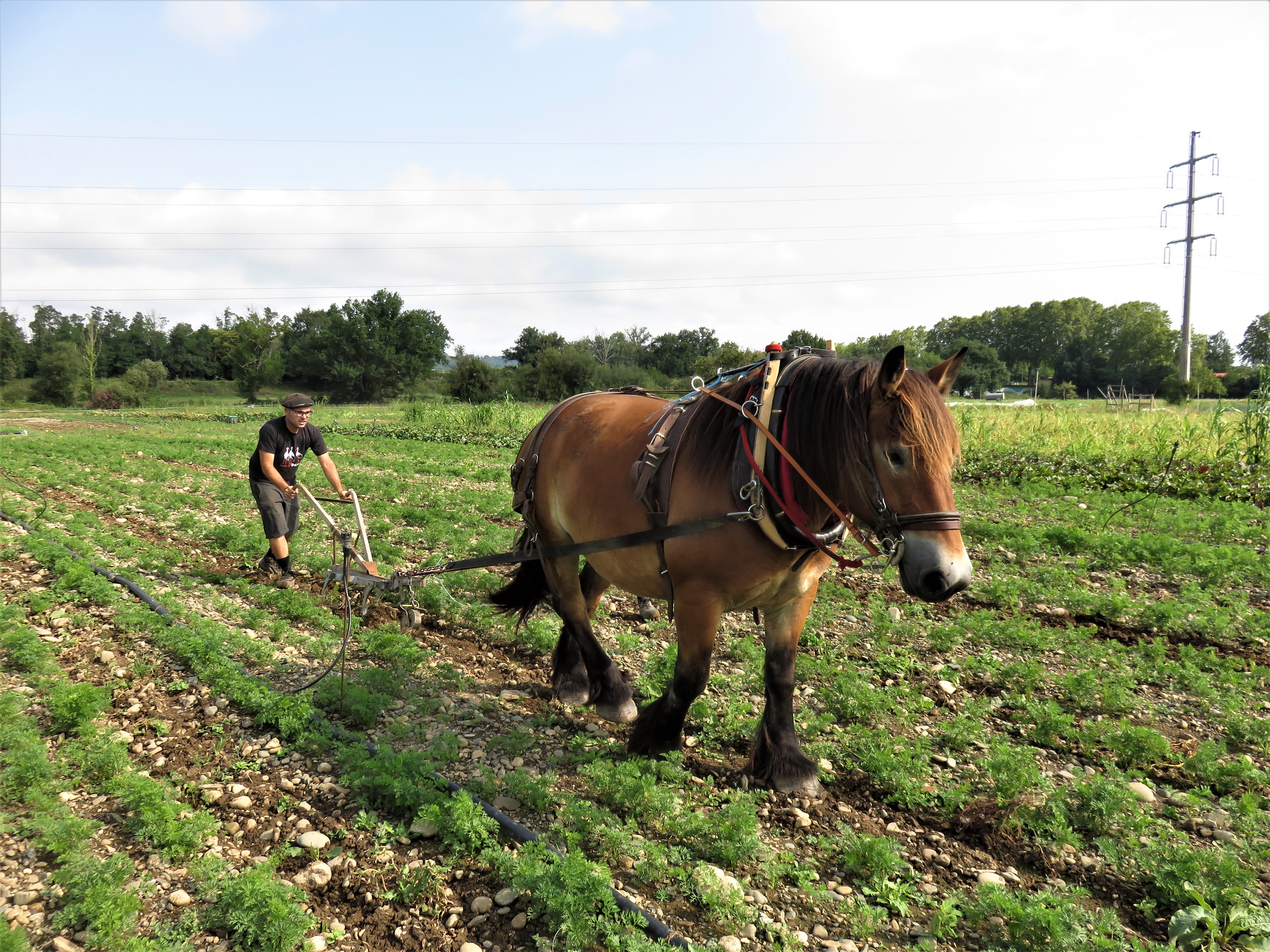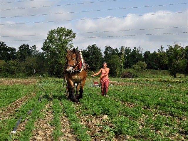 La traction animale n’est pas utilisée sur l’ensemble de la surface plein champ, seulement sur certaines cultures : carotte, panais, céleri rave, poireaux, oignons.