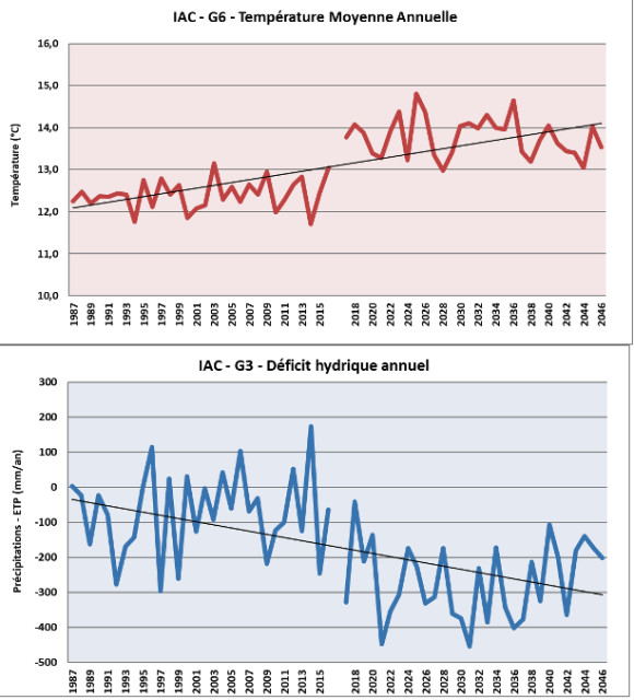 Évolution des températures et du déficit hydrique annuel :