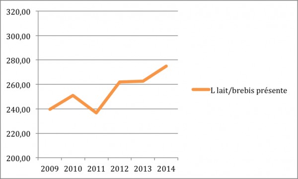 | Nombre de litres de lait produits par brebis présente |
