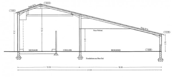 Les cellules de séchage, au nombre de deux, présentent une dimension de 15 m x 8,5 m chacune sur 7 à 8 mètres de hauteur, soit environ 900 m3. Un troisième espace est dédié au stockage du foin sec, des concentrés…